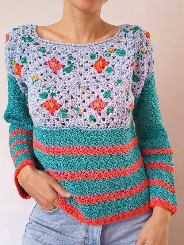 También vas a poder tejer versiones más livianas, perfectas para entretiempo variando el hilado como la versión sweater que ves en las fotos.